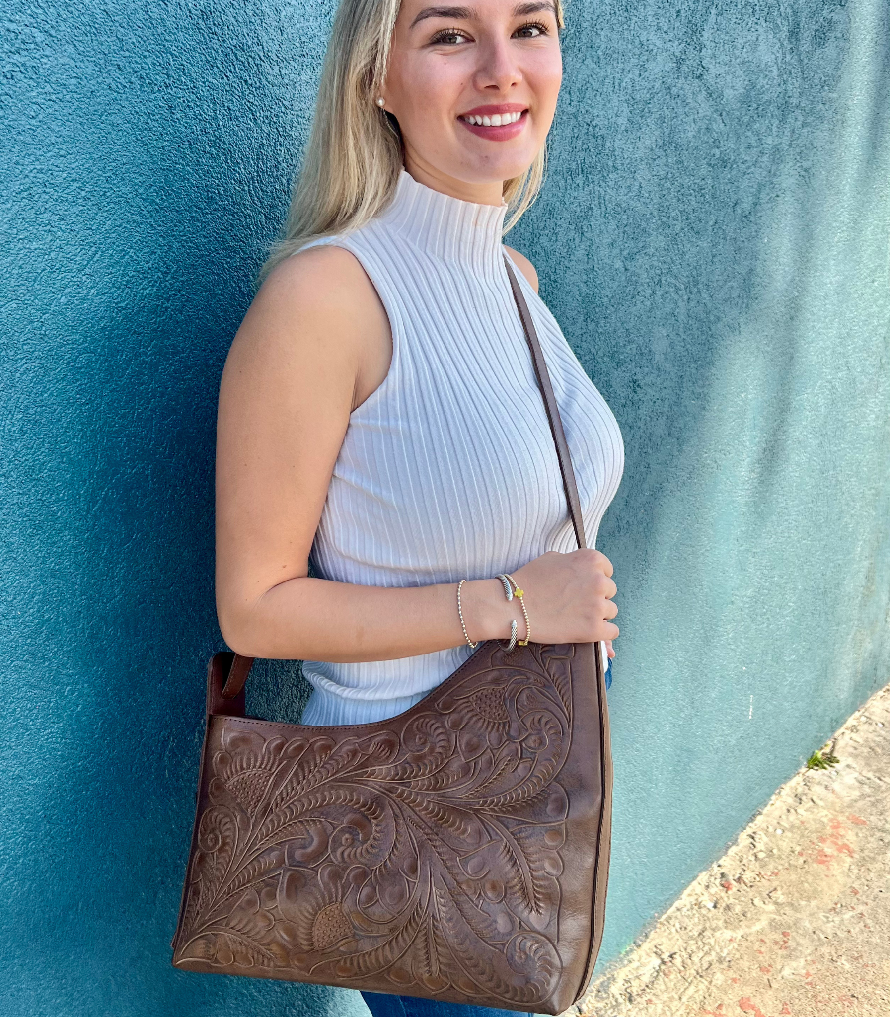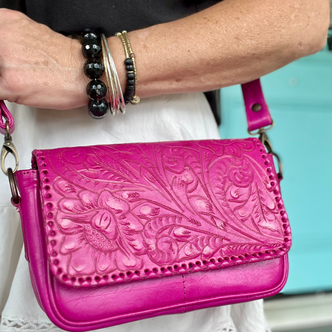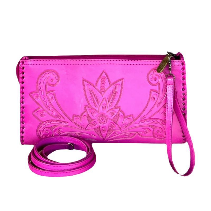The Ella is charming and super versatile. This Kuriosa is a 4-n-1. Clip on the longer strap for a crossbody or shoulder carry. The smaller circular strap attached, makes a perfect wristlet. Or go with no straps to create a darling clutch. The inside of The Ella has a protective lining useful for cosmetics and can drop into any one of the other Kuriosa bags as an extra pouch. It's a fantastic everywhere and everyday bag.